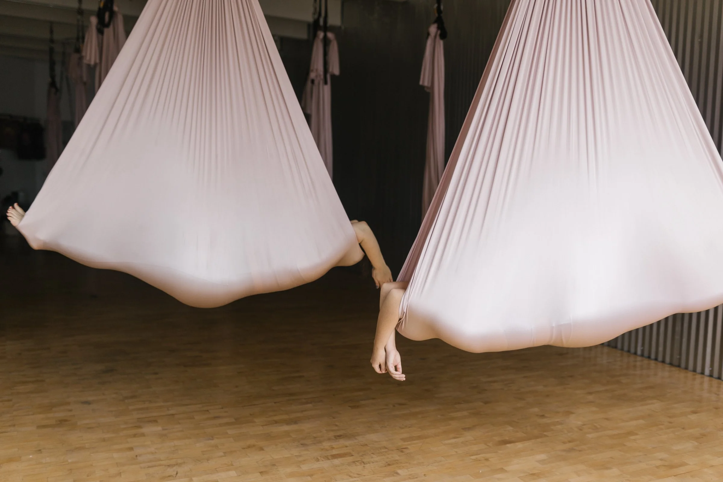 In our case, you’re not on the ground. You’re floating in an aerial yoga hammock.