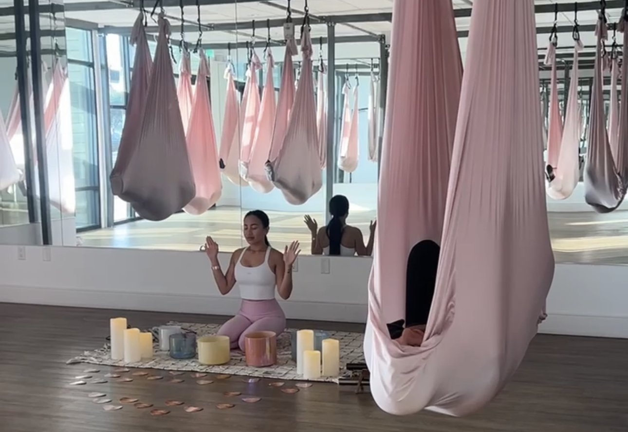 Being suspended allows sound waves to travel through your body without being absorbed by the earth. The healing frequencies may also travel freely around you, including underneath you, creating a full body immersion that cannot be reached on the mat.